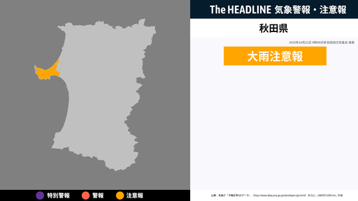 11月23日5時50分、秋田地方気象台は、秋田県に発表されている警報・注意報の経過、予測、防災上の留意点などを解説するために発表していた気象情報を更新した。