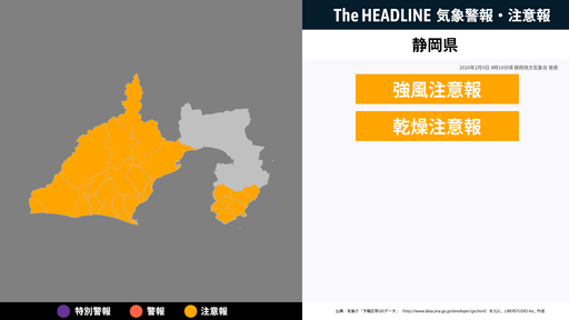 11月27日5時59分、静岡地方気象台は、静岡県に発表されている警報・注意報の経過、予測、防災上の留意点などを解説するために発表していた気象情報を更新した。