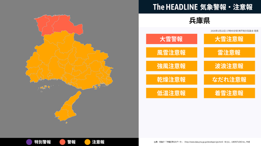 12月6日10時35分、神戸地方気象台は、兵庫県に発表されている警報・注意報の経過、予測、防災上の留意点などを解説するために雪に関する気象情報を発表した。