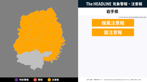 12月6日16時34分、盛岡地方気象台は、岩手県に発表されている警報・注意報の経過、予測、防災上の留意点などを解説するために発表していた気象情報を更新した。