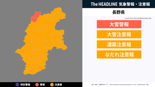 長野県、大雪に関する気象情報が更新