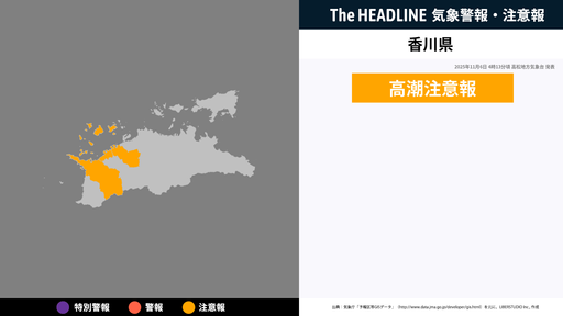 1月10日11時1分、高松地方気象台は、香川県に発表されている警報・注意報の経過、予測、防災上の留意点などを解説するために発表していた気象情報を更新した。