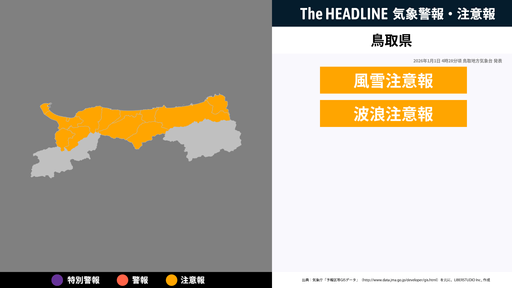 1月11日4時38分、鳥取地方気象台は、鳥取県に発表されている警報・注意報の経過、予測、防災上の留意点などを解説するために発表していた気象情報を更新した。