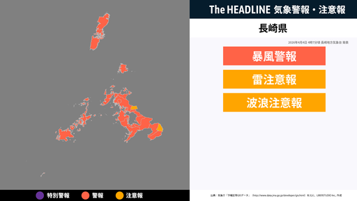 1月7日21時21分、長崎地方気象台は、長崎県に発表されている警報・注意報の経過、予測、防災上の留意点などを解説するために発表していた気象情報を更新した。