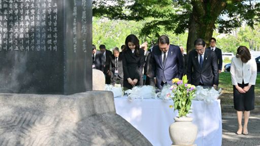 韓国人原爆慰霊碑で祈り=現職大統領初、岸田首相を称賛