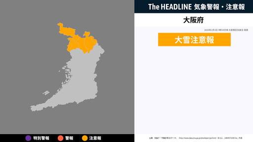 1月3日4時18分頃、大阪府に大雪注意報が発表