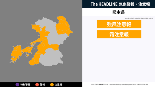 11月2日10時9分頃、熊本県に強風注意報・霜注意報が発表