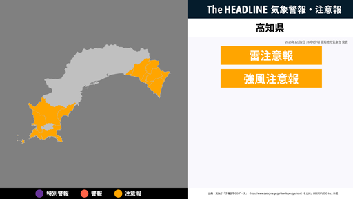 12月2日16時6分頃、高知県に雷注意報・強風注意報が発表