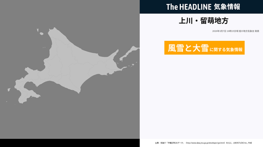 3月7日15時46分頃、上川地方・留萌地方に大雪注意報・風雪注意報などが発表