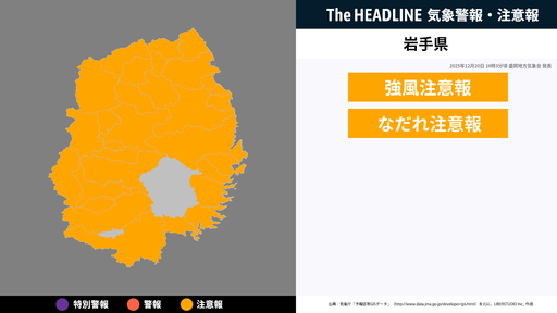 12月20日5時56分頃、石狩地方・空知地方・後志地方に融雪注意報・なだれ注意報が発表