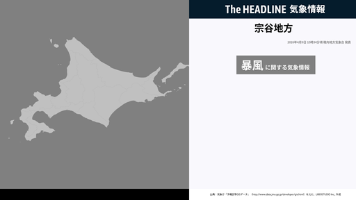 4月9日12時3分頃、渡島地方・檜山地方の強風注意報・波浪注意報などが更新