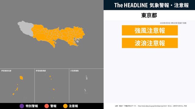 11月4日10時6分頃、東京都の強風注意報・波浪注意報が解除