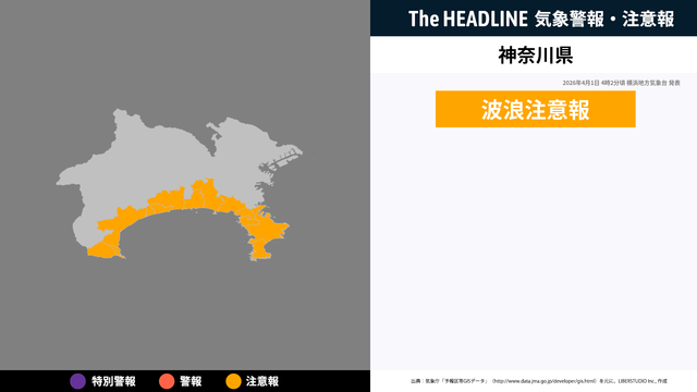 4月1日4時2分頃、神奈川県に波浪注意報が発表