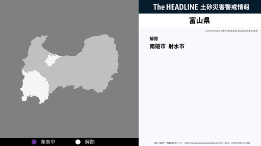 9月21日6時0分、富山県の土砂災害警戒情報が解除された