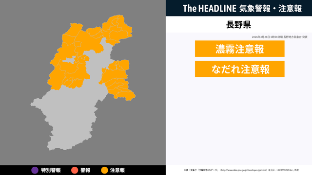 3月28日14時46分頃、長野県になだれ注意報・霜注意報が発表