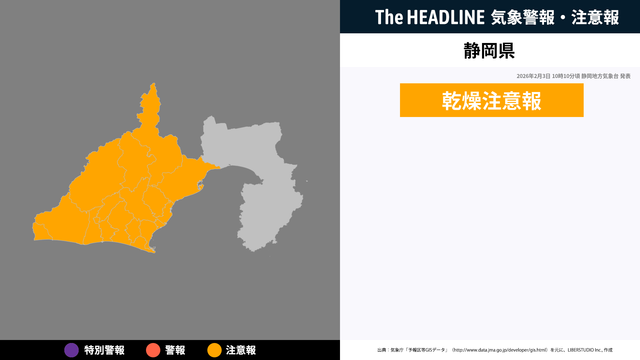 2月3日10時10分頃、静岡県に乾燥注意報が発表