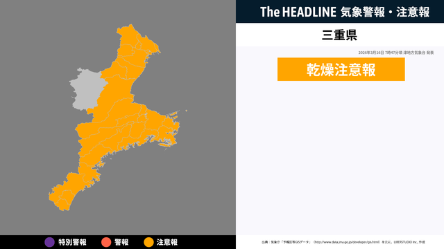 3月16日7時47分頃、三重県に乾燥注意報が発表