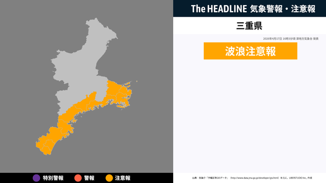 4月17日16時3分頃、三重県の波浪注意報が更新