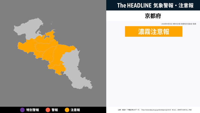 4月5日3時45分頃、京都府に濃霧注意報が発表