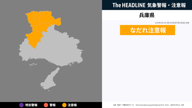 2月27日9時31分頃、兵庫県になだれ注意報が発表