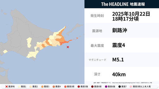 10月22日18時17分頃、北海道で最大震度4の地震を観測