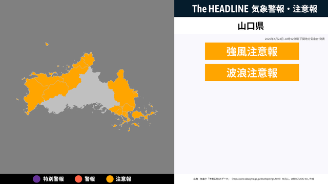 山口県に発表中の警報・注意報