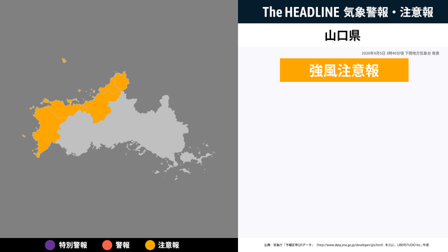 4月4日11時2分頃、山口県に強風注意報・波浪注意報が発表