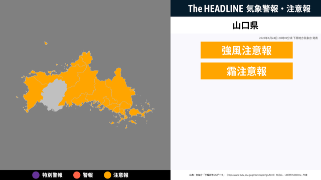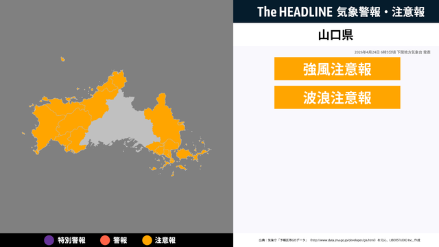 4月24日6時5分頃、山口県の強風注意報・波浪注意報が更新