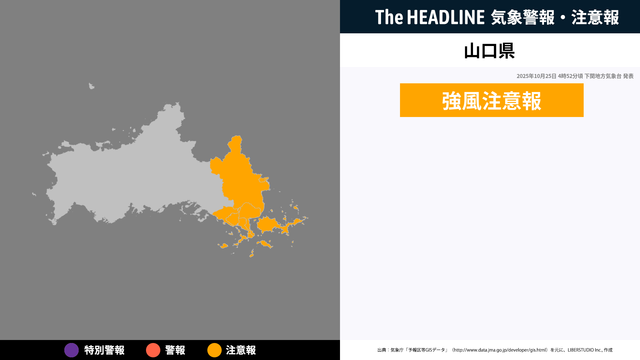 10月25日4時52分、下関地方気象台より山口県に強風注意報が発表された。