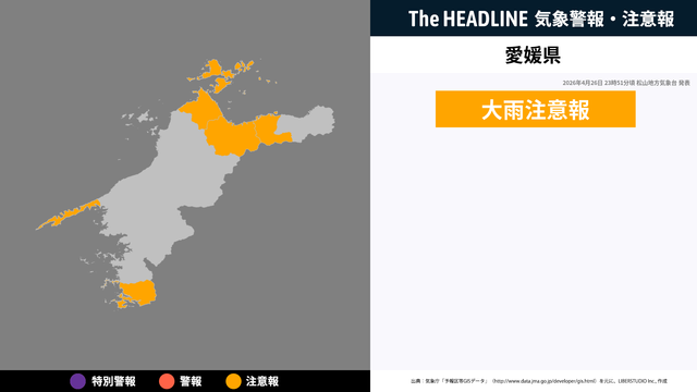 4月26日23時51分頃、愛媛県に大雨注意報が発表