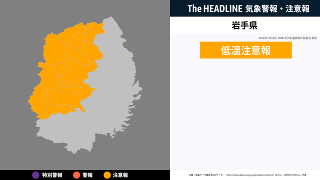 1月18日16時13分頃、岩手県に低温注意報が発表