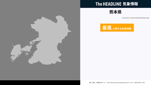 熊本県、暴風に関する気象情報が更新