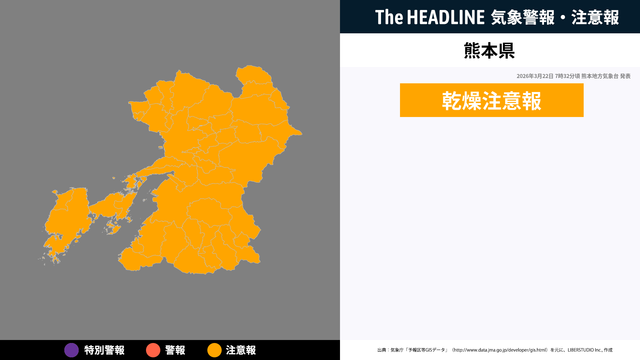 3月22日7時32分頃、熊本県に乾燥注意報が発表