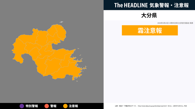 3月23日15時45分、大分地方気象台より大分県に霜注意報が発表された。