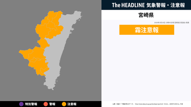 過去から現在にかけて、宮崎県に発表された気象警報・注意報の一覧。