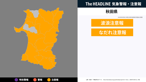 4月8日6時2分頃、秋田県に波浪注意報・なだれ注意報が発表