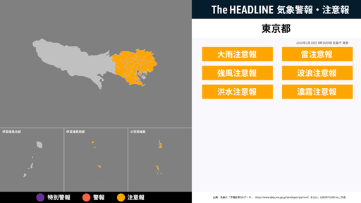 2月28日8時36分頃、東京都の大雨注意報・雷注意報などが更新
