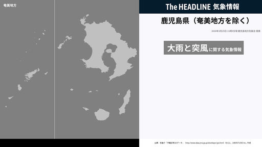 3月25日10時30分頃、鹿児島県(奄美地方除く)に大雨注意報・強風注意報などが発表