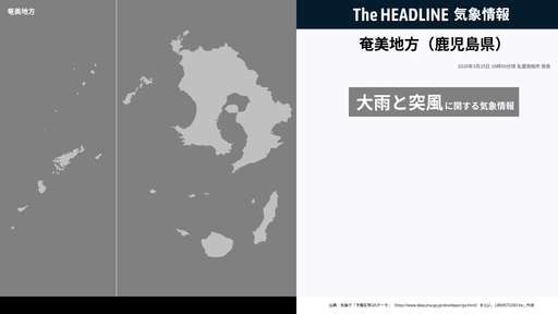 奄美地方(鹿児島県)、大雨と突風に関する気象情報が更新