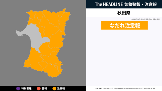 秋田県、なだれに関する気象情報が発表