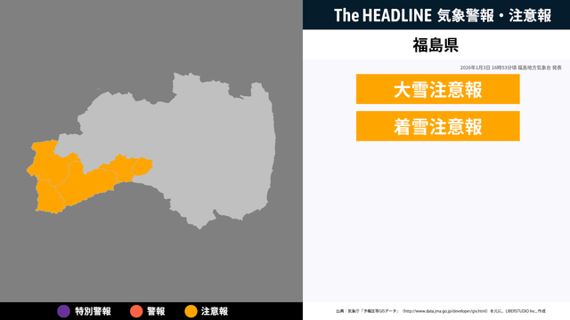 福島県、暴風雪と大雪に関する気象情報が更新