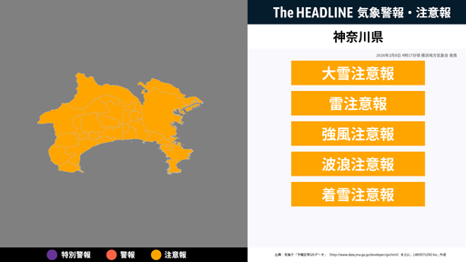 2月8日4時17分頃、神奈川県の大雪注意報・雷注意報などが更新