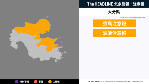 3月1日8時28分頃、福島県に強風注意報・波浪注意報などが発表