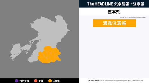 3月1日9時35分頃、宮崎県・鹿児島県で最大震度2の地震を観測