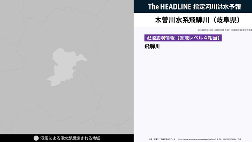 木曽川水系飛騨川(岐阜県)が氾濫危険水位に到達して、氾濫する危険性