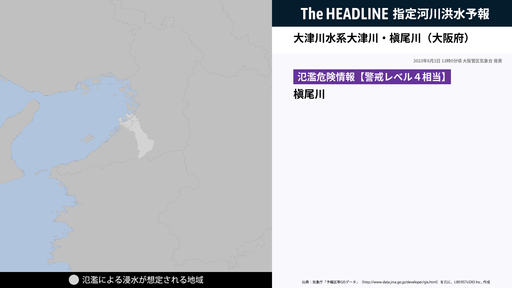 大津川水系大津川・槇尾川(大阪府)が氾濫危険水位に到達して、氾濫する危険性