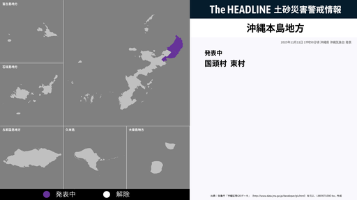 11月11日17時50分、沖縄本島地方に土砂災害警戒情報が発表された