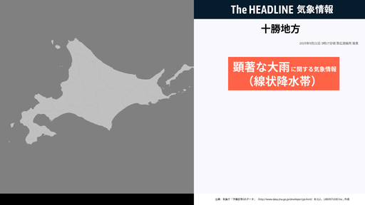 十勝地方、線状降水帯による非常に激しい雨が続き災害発生の危険度が急激に高まる