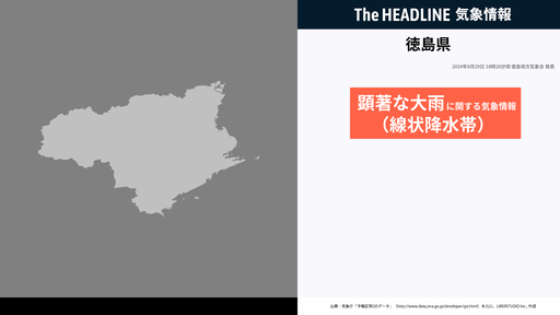 徳島県北部、線状降水帯による非常に激しい雨が続き災害発生の危険度が急激に高まる