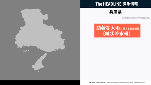 兵庫県南部、線状降水帯による非常に激しい雨が続き災害発生の危険度が急激に高まる